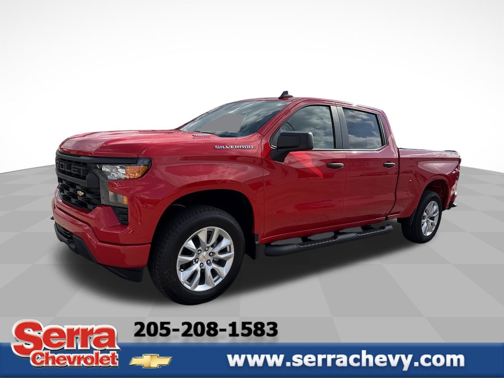 Serra Chevrolet is pumped up to offer this hard-working 2026 Chevrolet Silverado 1500 in Red Hot This vehicle has passed our comprehensive inspection and comes with the following features;2026 Chevrolet Silverado 1500 Custom 2.7L I4 Turbocharged DOHC 16V LEV3-SULEV30 310hp 8-Speed Automatic 4WD Custom Red Hot8-Speed Automatic, 4WD, Jet Black Cloth, 10-Way Power Driver Seat w/Lumbar, 120-Volt Bed Mounted Power Outlet, 120-Volt Interior Power Outlet, 3.42 Rear Axle Ratio, 3.5" Monochromatic Display Driver Info Center, 4-Wheel Disc Brakes, 40/20/40 Front Split-Bench Seat, 6 Speakers, 6-Speaker Audio System, ABS brakes, Air Conditioning, Alloy wheels, AM/FM radio: SiriusXM, Apple CarPlay/Android Auto, Auto High-beam Headlights, Automatic Emergency Braking, Bluetooth® For Phone, Brake assist, Bumpers: body-color, Cloth Seat Trim, Color-Keyed Carpeting Floor Covering, Compass, Custom Convenience Package, Custom Value Package, Deep-Tinted Glass, Delay-off headlights, Driver door bin, Driver vanity mirror, Dual front impact airbags, Dual front side impact airbags, Dual Rear USB Ports (Charge Only), Electric Rear-Window Defogger, Electronic Cruise Control, Electronic Stability Control, Emergency communication system: OnStar, EZ Lift Power Lock & Release Tailgate, Following Distance Indicator, Forward Collision Alert, Front anti-roll bar, Front Center Armrest w/Storage, Front Frame-Mounted Black Recovery Hooks, Front Pedestrian Braking, Front reading lights, Front Rubberized Vinyl Floor Mats, Front wheel independent suspension, Fully automatic headlights, HD Rear Vision Camera, Heated door mirrors, High Capacity Suspension Package, Hitch Guidance, Illuminated entry, IntelliBeam Automatic High Beam On/Off, Lane Keep Assist w/Lane Departure Warning, LED Cargo Area Lighting, Low tire pressure warning, Manual Tilt Wheel Steering Column, Occupant sensing airbag, OnStar Services Capable, Outside temperature display, Overhead airbag, Overhead console, Panic alarm, Passenger door bin, Passenger vanity mirror, Power door mirrors, Power driver seat, Power Front Windows w/Driver Express Up/Down, Power Front Windows w/Passenger Express Down, Power Rear Windows w/Express Down, Power steering, Power windows, Premium audio system: Chevrolet Infotainment 3, Radio data system, Radio: Chevrolet Infotainment 3 System, Rear 60/40 Folding Bench Seat (Folds Up), Rear reading lights, Rear Rubberized-Vinyl Floor Mats, Rear step bumper, Rear window defroster, Remote Keyless Entry, Remote keyless entry, Remote Vehicle Starter System, Security system, SiriusXM Trial Subscription, Speed control, Speed-sensing steering, Split folding rear seat, Standard Tailgate, Tachometer, Teen Driver, Theft Deterrent System (Unauthorized Entry), Tilt steering wheel, Tire Pressure Monitoring System, Traction control, Trailering Package, Trip computer, Variably intermittent wipers, Voltmeter, Wheels: 20" x 9" Bright Silver Painted Aluminum, Wi-Fi Hot Spot Capable, 8-Speed Automatic, 4WD, Jet Black Cloth.Experience the Serra Promise - it's our promise to you; our valued customer. It's peace of mind that at any of our dealerships, you will find exactly what you need, from friends and neighbors you can trust for the road ahead! It's our promise to you: our valued customer. Our Family Serving Your Family Since 1981. Call for info at 205-588-4374 or visit us at www.serrachevy.com. Price includes: $1000 - Bonus Cash. Exp. 01/02/2026 $1000 - Select Market Purchase Bonus Cash. Exp. 01/02/2026 $1250 - Trade Assistance. Exp. 01/02/2026 $3000 - Customer Cash. Exp. 01/02/2026