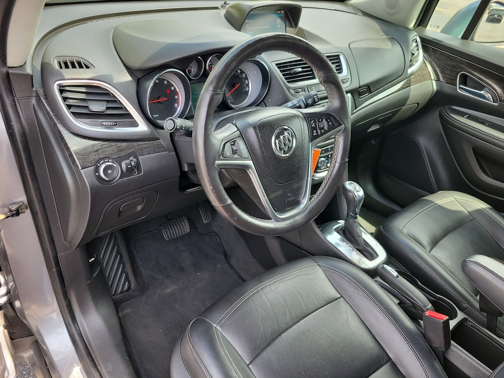 The 2015 Buick Encore Leather is a compact SUV that delivers premium comfort, fuel efficiency, and easy drivability in a stylish package. Finished in Satin Steel Gray Metallic with an Ebony interior, this Encore offers a refined look with a comfortable and well-appointed cabin.