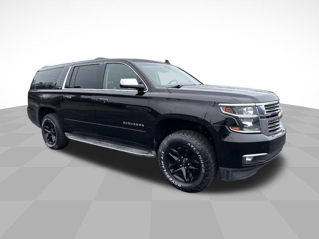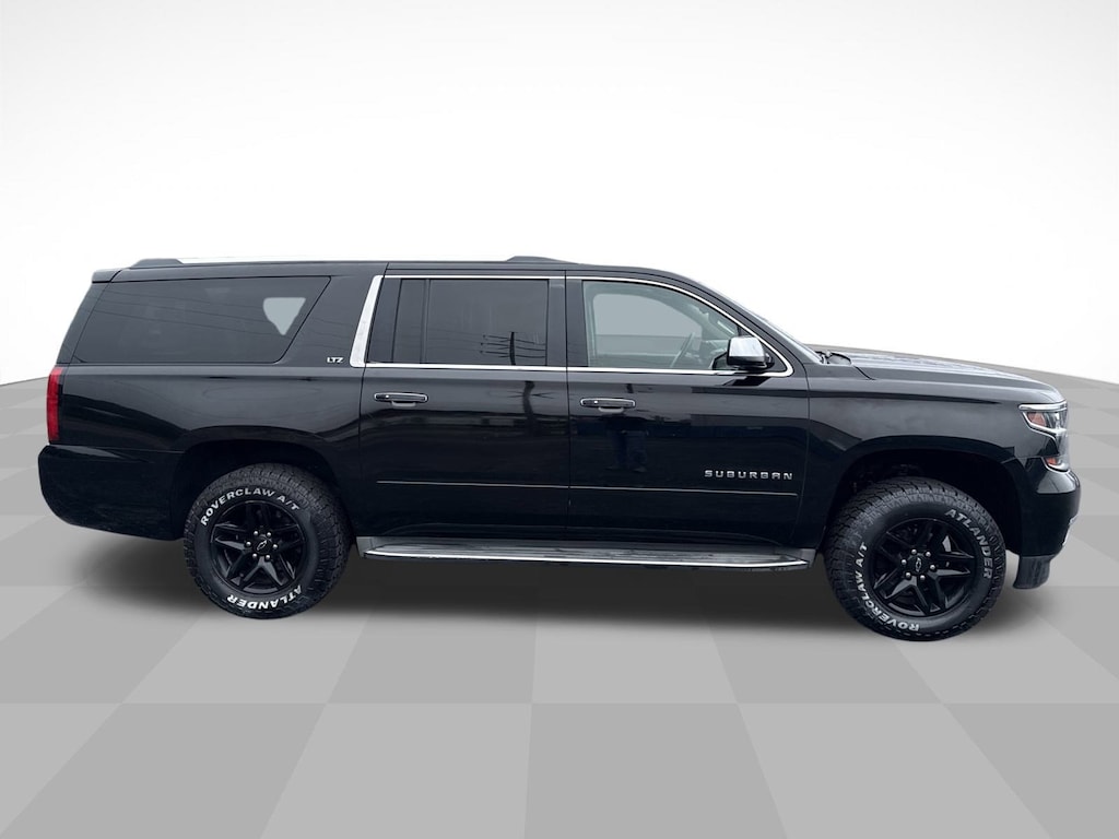 Black 2015 Chevrolet Suburban LTZ RWD 6-Speed Automatic Electronic with Overdrive EcoTec3 5.3L V8 10 Speakers, 3.08 Rear Axle Ratio, 3rd Row 60/40 Power Fold Split-Bench, 3rd row seats: split-bench, 4-Wheel Disc Brakes, ABS brakes, Adaptive suspension, Adjustable pedals, Air Conditioning, Alloy wheels, AM/FM radio: SiriusXM, Auto-dimming door mirrors, Auto-Dimming Inside Rear-View Mirror, Auto-dimming Rear-View mirror, Automatic temperature control, Bodyside moldings, Bose Centerpoint Surround Sound 10-Speaker System, Brake assist, Bumpers: body-color, CD player, Color-Keyed Heated Leather-Wrapped Steering Wheel, Compass, Delay-off headlights, Driver & Front Passenger Airbags, Driver door bin, Driver vanity mirror, Dual front impact airbags, Dual front side impact airbags, Electronic Stability Control, Emergency communication system: OnStar Directions & Connections, Exterior Parking Camera Rear, Floor Console w/Storage Area, Fog Lamps, Forward Collision Alert Sensor Indicator, Front & Rear Parking Assist, Front anti-roll bar, Front Bucket Seats, Front Center Armrest, Front dual zone A/C, Front fog lights, Front reading lights, Front Reclining Bucket Seats, Front wheel independent suspension, Fully automatic headlights, Garage door transmitter, Hands Free Power Liftgate, Headphones, Heated & Cooled Driver & Front Passenger Seats, Heated 2nd Row Seats, Heated door mirrors, Heated front seats, Heated rear seats, Heated steering wheel, Heavy-Duty Locking Rear Differential (DISC), High-Intensity Discharge Headlights, Illuminated entry, Keyless Start Switch, Lane Departure Warning & Safety Alert Seat, Leather Shift Knob, Low tire pressure warning, Magnetic Ride Control Suspension Package, Memory seat, Memory Settings, Navigation System, Occupant sensing airbag, OnStar w/4G LTE, Outside temperature display, Overhead airbag, Overhead console, Panic alarm, Passenger door bin, Passenger vanity mirror, Passive Entry System, Pedal memory, Perforated Leather-Appointed Seat Trim, Power door mirrors, Power driver seat, Power Folding & Adjustable Heated Outside Mirrors, Power Liftgate, Power passenger seat, Power Release 2nd Row Bucket Seats, Power steering, Power Tilt & Telescoping Steering Column, Power Tilt-Sliding Sunroof w/Express-Open/Close, Power windows, Power-Adjustable Accelerator & Brake Pedals, Preferred Equipment Group 1LZ, Radio: Chevrolet MyLink w/Navigation/AM/FM Stereo, Rain sensing wipers, Rear air conditioning, Rear anti-roll bar, Rear audio controls, Rear Cross-Traffic Alert Sensor Indicator, Rear reading lights, Rear window defroster, Rear window wiper, Remote keyless entry, Roof rack: rails only, Security system, Side Blind Zone Alert w/Lane Change Alert, Single-Slot CD/MP3 Player, SiriusXM Satellite & HD Radio, Speed control, Speed-sensing steering, Split folding rear seat, Spoiler, Steering wheel memory, Steering wheel mounted audio controls, Tachometer, Telescoping steering wheel, Tilt steering wheel, Traction control, Trip computer, Turn signal indicator mirrors, Universal Home Remote, Variably intermittent wipers, Ventilated front seats, Voltmeter, Wheels: 20" x 9" Polished-Aluminum, Wireless Charging.