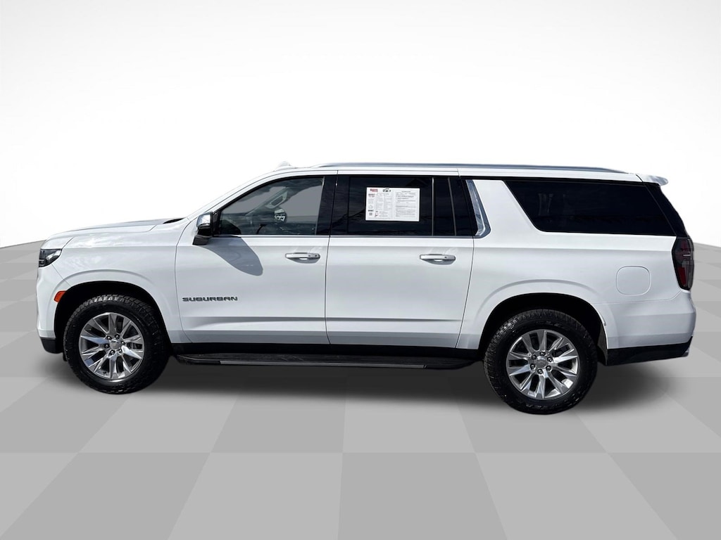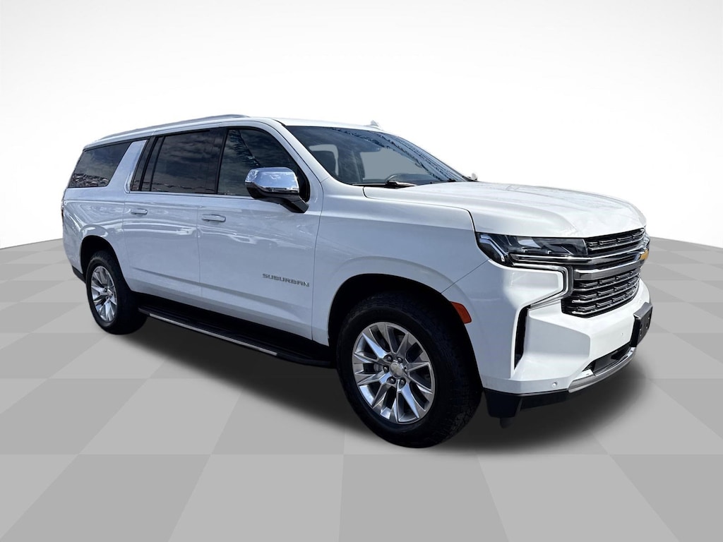 Summit White 2023 Chevrolet Suburban Premier 4WD 10-Speed Automatic with Overdrive EcoTec3 5.3L V8 10 Speakers, 1st & 2nd Row Color-Keyed Carpeted Floor Mats, 2-Speed Active Electronic AutoTrac Transfer Case, 20" x 9" Polished Aluminum Wheels, 3.23 Rear Axle Ratio, 3rd Row 60/40 Power-Folding Split-Bench, 3rd row seats: split-bench, 4-Wheel Disc Brakes, ABS brakes, Adaptive suspension, Air Conditioning, Alloy wheels, AM/FM radio: SiriusXM with 360L, Apple CarPlay/Android Auto, Auto High-beam Headlights, Auto-dimming door mirrors, Auto-Dimming Inside Rear-View Mirror, Auto-dimming Rear-View mirror, Auto-leveling suspension, Automatic temperature control, Bose 10-Speaker Surround w/CenterPoint, Brake assist, Bright Front & Rear Door Sill Plates, Bumpers: body-color, Chrome Door Handles w/Body-Color Strip, Chrome Mirror Caps, Color-Keyed Carpeting Floor Covering, Compass, Delay-off headlights, Deleted 3 Years of Remote Access, Driver & Front Outboard Passenger Airbags, Driver door bin, Driver vanity mirror, Dual Exhaust System, Dual front impact airbags, Dual front side impact airbags, Electrical Steering Column Lock (DISC), Electronic Stability Control, Emergency communication system: OnStar and Chevrolet connected services capable, Enhanced Driver Information Center, Floor Console, Four wheel independent suspension, Front anti-roll bar, Front Bucket Seats, Front Center Armrest, Front dual zone A/C, Front reading lights, Fully automatic headlights, Garage door transmitter, Hands-Free Rear Power Programmable Liftgate, Heated & Ventilated Driver & Front Passenger Seats, Heated 2nd Row Outboard Seats, Heated door mirrors, Heated Driver & Front Passenger Seats, Heated front seats, Heated rear seats, Heated Steering Wheel, Heated steering wheel, Hill Descent Control, Illuminated entry, Infotainment Display, Lane Change Alert w/Side Blind Zone Alert, LED Daytime Running Lamps, License Plate Front Mounting Package, Low tire pressure warning, Magnetic Ride Control Suspension, Memory seat, Memory Settings, Navigation System, Occupant sensing airbag, Outside Heated Power-Adjustable Mirrors, Outside temperature display, Overhead airbag, Overhead console, Panic alarm, Passenger door bin, Passenger vanity mirror, Perforated Leather Seating Surfaces, Power door mirrors, Power driver seat, Power Liftgate, Power passenger seat, Power Release 2nd Row Bucket Seats, Power steering, Power Tilt & Telescopic Steering Column, Power windows, Preferred Equipment Group 1LZ, Premium audio system: Chevrolet Infotainment 3 Premium, Radio: Chevrolet Infotainment 3 Premium System, Rain sensing wipers, Rear air conditioning, Rear anti-roll bar, Rear Cross Traffic Alert, Rear reading lights, Rear window defroster, Rear window wiper, Remote keyless entry, Remote Start, Roof rack: rails only, Safety Alert Seat, Security system, SiriusXM Radio w/360L, Speed control, Speed-sensing steering, Split folding rear seat, Spoiler, Steering wheel memory, Steering wheel mounted audio controls, Tachometer, Telescoping steering wheel, Tilt steering wheel, Traction control, Trip computer, Turn signal indicator mirrors, Universal Home Remote, Variably intermittent wipers, Ventilated front seats, Voltmeter, Wireless Charging, Wrapped Steering Wheel.