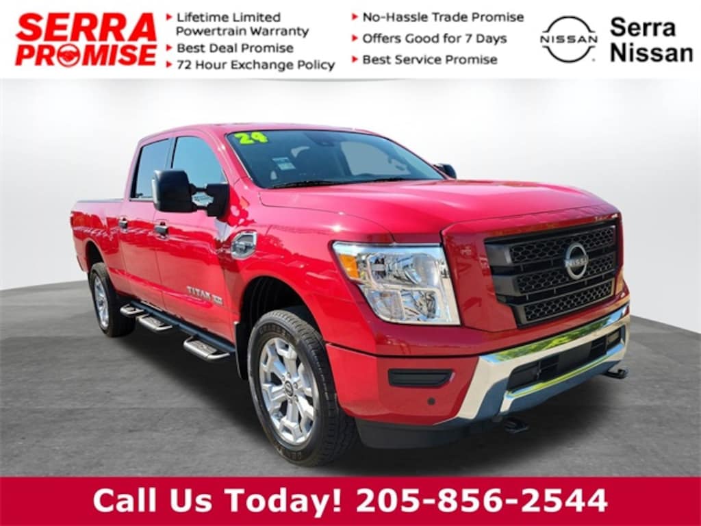 Come on down to Serra Nissan/VW to see this 2024 Titan XD in Red Alert.